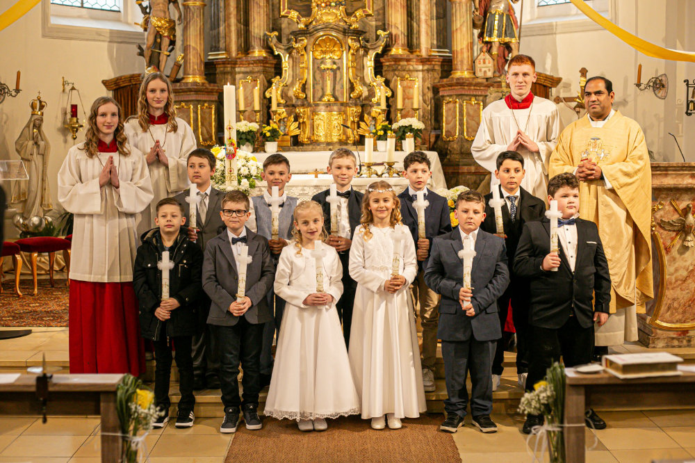 Am Weißen Sonntag feierte die Pfarreiengemeinschaft Freihung-Großschönbrunn in der Pfarrkirche Hl. Dreifaltigkeit in Freihung festliche Erstkommunion. Insgesamt elf Kinder, darunter zwei Mädchen und neun Buben, durften an diesem besonderen Tag zum ersten Mal die heilige Kommunion empfangen.